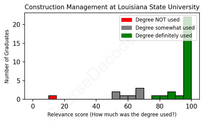 First, some facts. Of the Construction Management graduates from Louisiana State University we've analyzed , here's how many have used (or NOT used) their degree in their career: