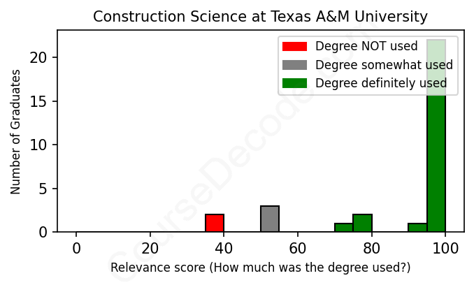 First, some facts. Of the Construction Science graduates from Texas A&M University we've analyzed , here's how many have used (or NOT used) their degree in their career: