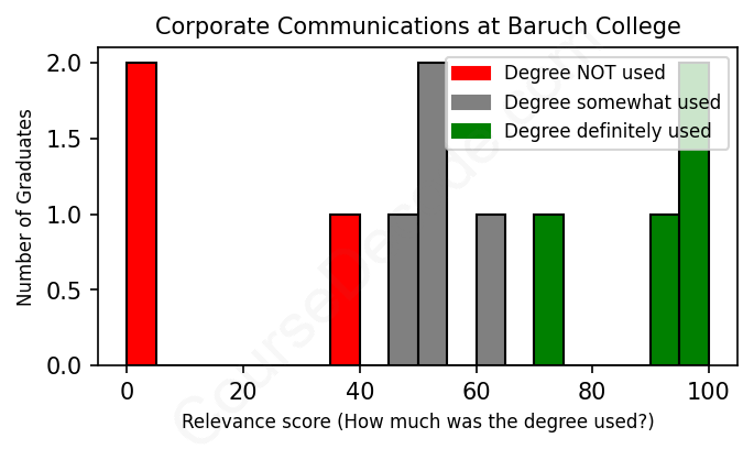 First, some facts. Of the Corporate Communications graduates from Baruch College we've analyzed , here's how many have used (or NOT used) their degree in their career: