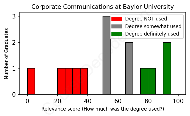First, some facts. Of the Corporate Communications graduates from Baylor University we've analyzed , here's how many have used (or NOT used) their degree in their career: