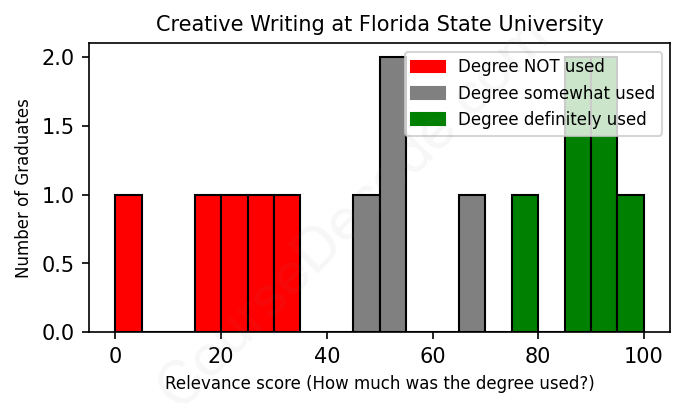 First, some facts. Of the Creative Writing graduates from Florida State University we've analyzed , here's how many have used (or NOT used) their degree in their career: