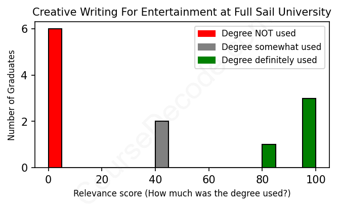 First, some facts. Of the Creative Writing For Entertainment graduates from Full Sail University we've analyzed , here's how many have used (or NOT used) their degree in their career: