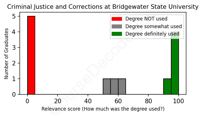 First, some facts. Of the Criminal Justice and Corrections graduates from Bridgewater State University we've analyzed , here's how many have used (or NOT used) their degree in their career: