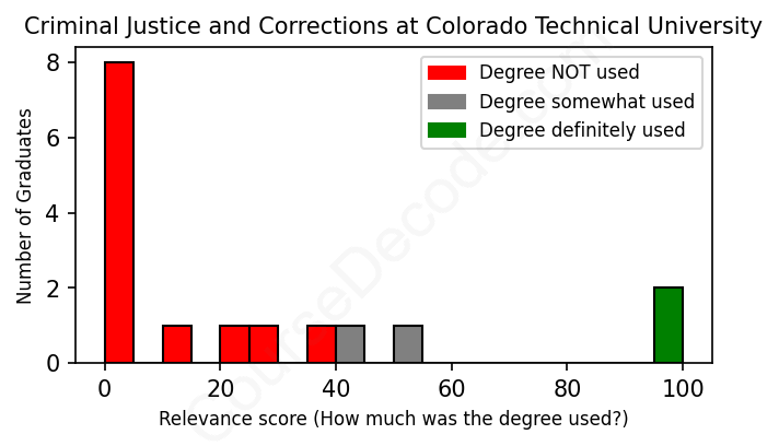 First, some facts. Of the Criminal Justice and Corrections graduates from Colorado Technical University we've analyzed , here's how many have used (or NOT used) their degree in their career: