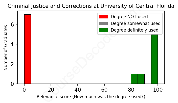 First, some facts. Of the Criminal Justice and Corrections graduates from University of Central Florida we've analyzed , here's how many have used (or NOT used) their degree in their career: