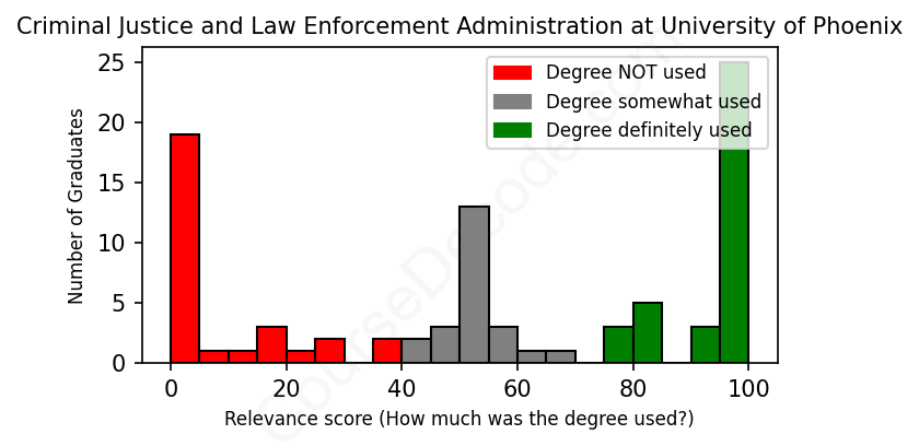 First, some facts. Of the Criminal Justice and Law Enforcement Administration graduates from University of Phoenix we've analyzed , here's how many have used (or NOT used) their degree in their career:
