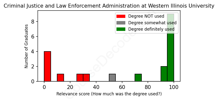 First, some facts. Of the Criminal Justice and Law Enforcement Administration graduates from Western Illinois University we've analyzed , here's how many have used (or NOT used) their degree in their career: