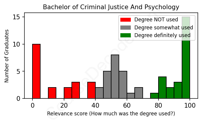 First, some facts. Of the Criminal Justice And Psychology graduates we've analyzed , here's how many have used (or NOT used) their degree in their career:
