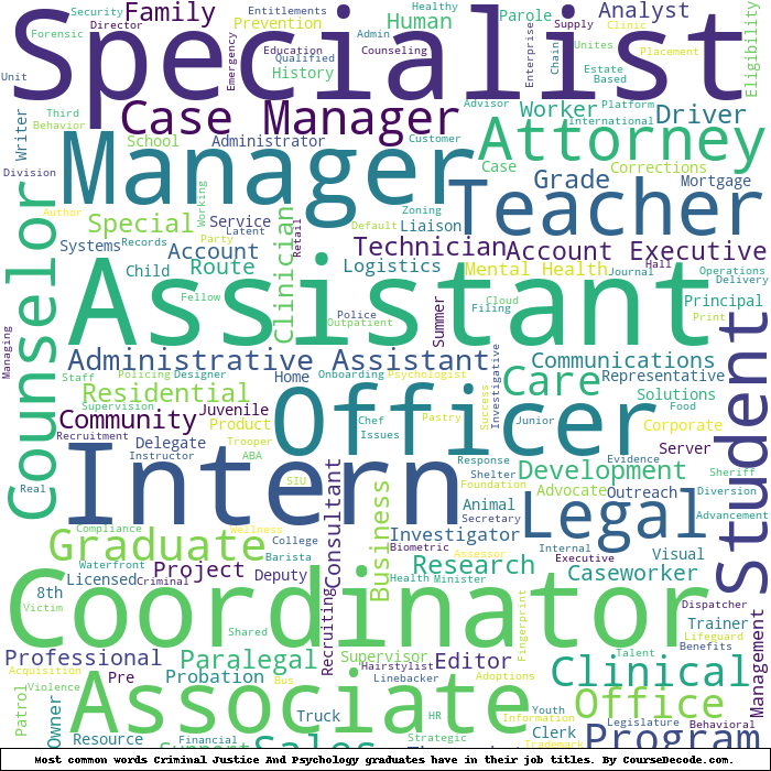 Here is a visual representation of the most common words in job titles for Criminal Justice And Psychology graduates:
