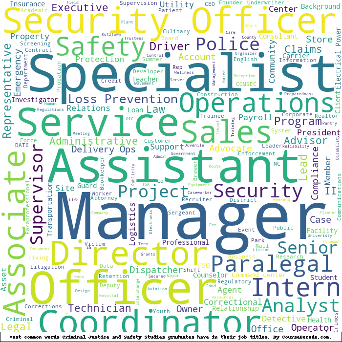 Here is a visual representation of the most common words in job titles for Criminal Justice and Safety Studies graduates: