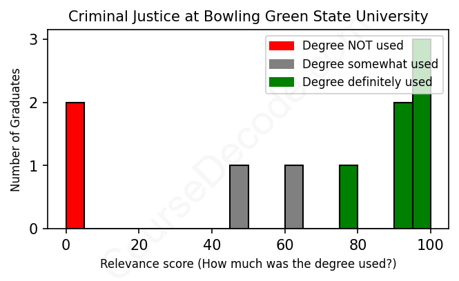 First, some facts. Of the Criminal Justice graduates from Bowling Green State University we've analyzed , here's how many have used (or NOT used) their degree in their career: