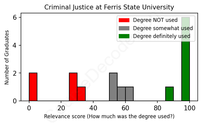 First, some facts. Of the Criminal Justice graduates from Ferris State University we've analyzed , here's how many have used (or NOT used) their degree in their career: