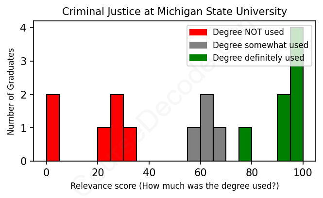 First, some facts. Of the Criminal Justice graduates from Michigan State University we've analyzed , here's how many have used (or NOT used) their degree in their career: