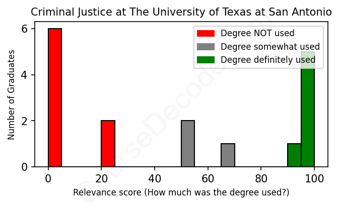 First, some facts. Of the Criminal Justice graduates from The University of Texas at San Antonio we've analyzed , here's how many have used (or NOT used) their degree in their career: