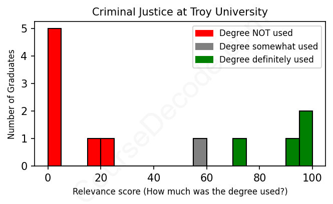 First, some facts. Of the Criminal Justice graduates from Troy University we've analyzed , here's how many have used (or NOT used) their degree in their career: