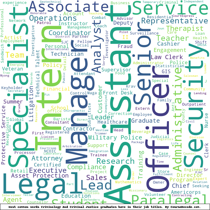 Here is a visual representation of the most common words in job titles for Criminology And Criminal Justice graduates: