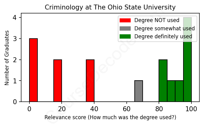 First, some facts. Of the Criminology graduates from The Ohio State University we've analyzed , here's how many have used (or NOT used) their degree in their career: