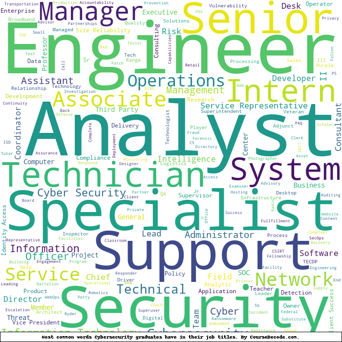 Here is a visual representation of the most common words in job titles for Cybersecurity graduates: