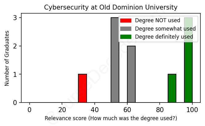 First, some facts. Of the Cybersecurity graduates from Old Dominion University we've analyzed , here's how many have used (or NOT used) their degree in their career:
