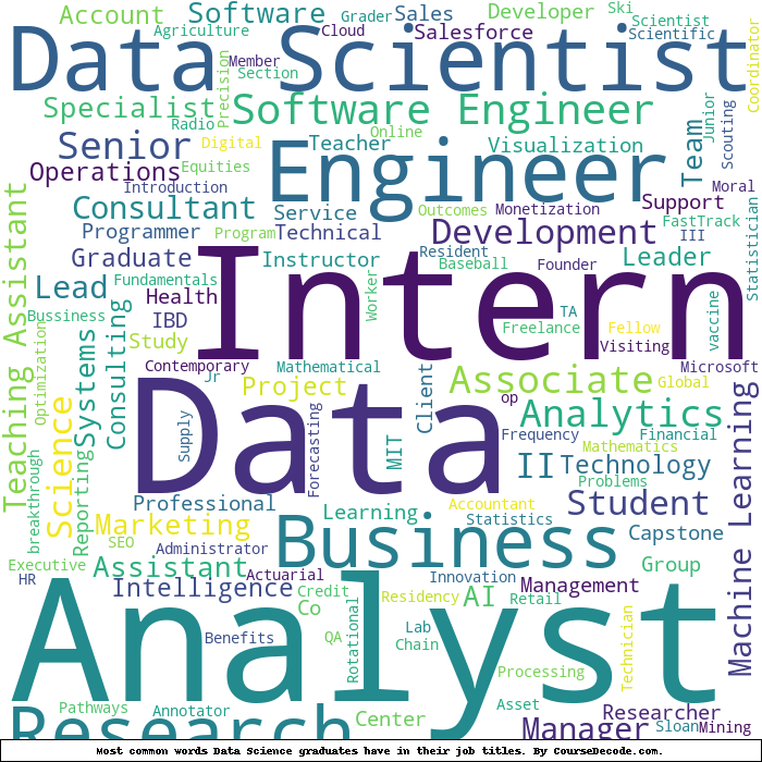 Here is a visual representation of the most common words in job titles for Data Science graduates: