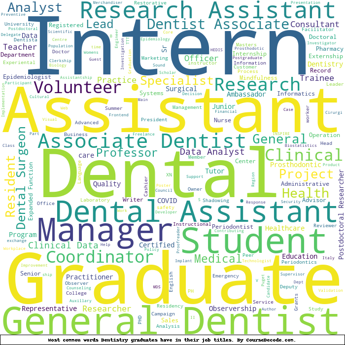 Here is a visual representation of the most common words in job titles for Dentistry graduates:
