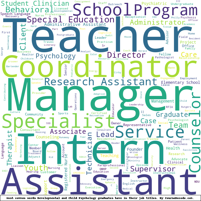 Here is a visual representation of the most common words in job titles for Developmental and Child Psychology graduates: