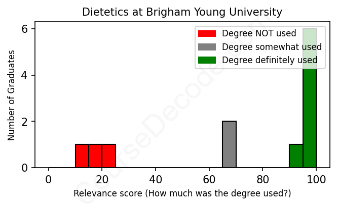 First, some facts. Of the Dietetics graduates from Brigham Young University we've analyzed , here's how many have used (or NOT used) their degree in their career: