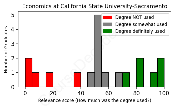 First, some facts. Of the Economics graduates from California State University-Sacramento we've analyzed , here's how many have used (or NOT used) their degree in their career: