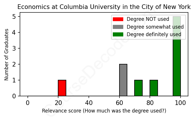 First, some facts. Of the Economics graduates from Columbia University in the City of New York we've analyzed , here's how many have used (or NOT used) their degree in their career: