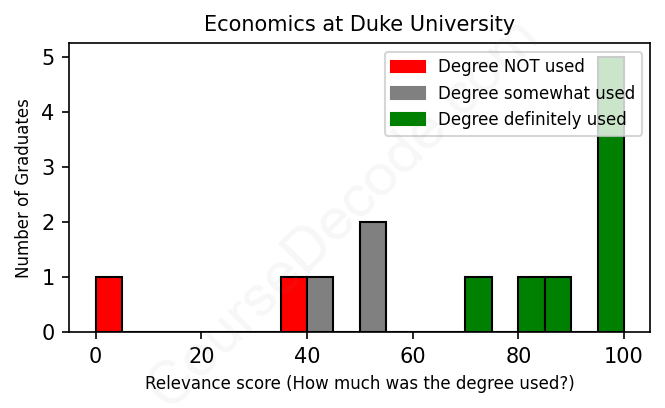 First, some facts. Of the Economics graduates from Duke University we've analyzed , here's how many have used (or NOT used) their degree in their career: