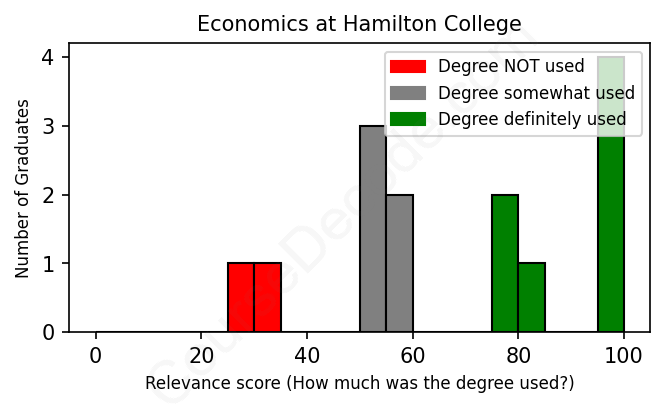 First, some facts. Of the Economics graduates from Hamilton College we've analyzed , here's how many have used (or NOT used) their degree in their career: