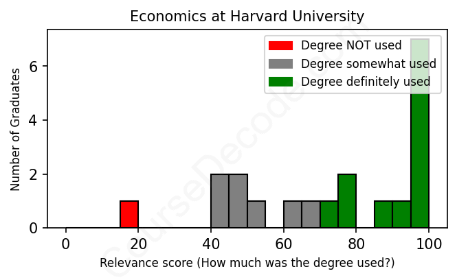 First, some facts. Of the Economics graduates from Harvard University we've analyzed , here's how many have used (or NOT used) their degree in their career: