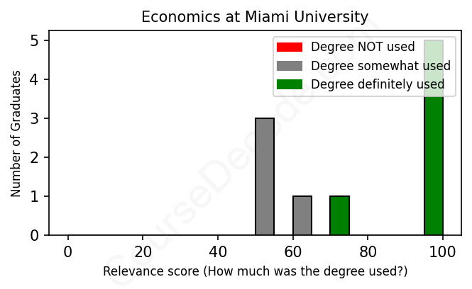 First, some facts. Of the Economics graduates from Miami University we've analyzed , here's how many have used (or NOT used) their degree in their career: