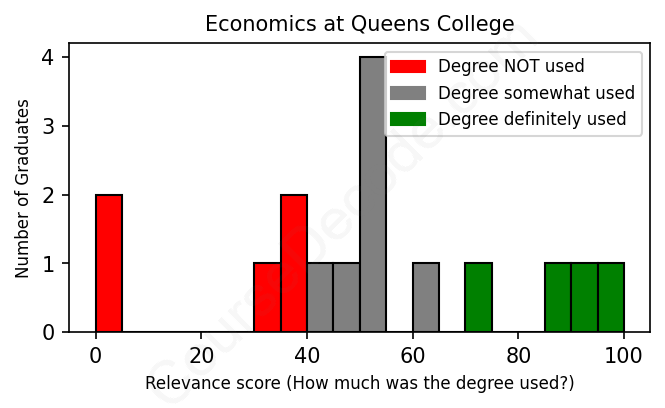 First, some facts. Of the Economics graduates from Queens College we've analyzed , here's how many have used (or NOT used) their degree in their career:
