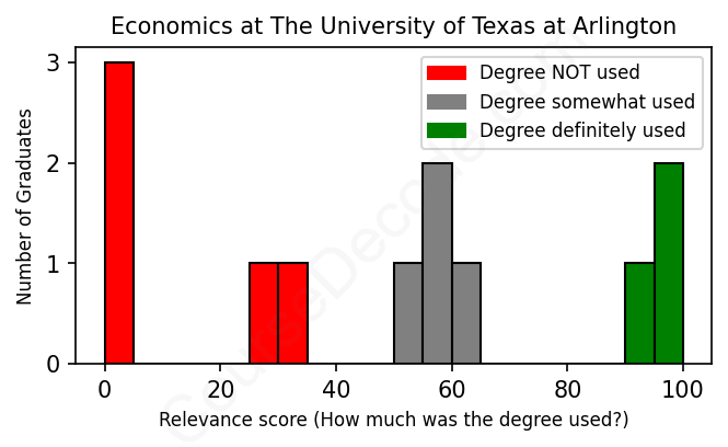 First, some facts. Of the Economics graduates from The University of Texas at Arlington we've analyzed , here's how many have used (or NOT used) their degree in their career: