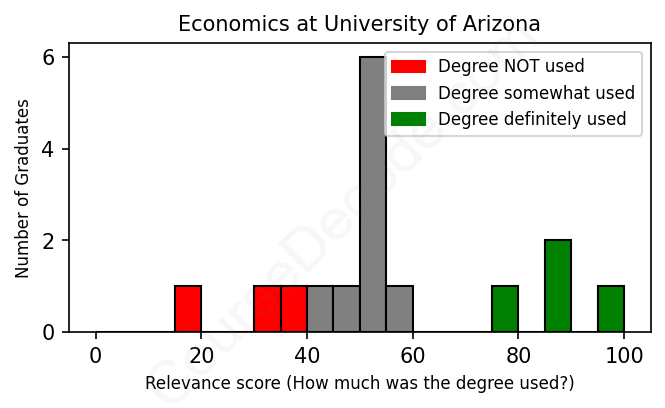 First, some facts. Of the Economics graduates from University of Arizona we've analyzed , here's how many have used (or NOT used) their degree in their career: