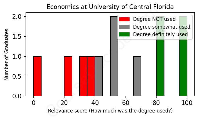 First, some facts. Of the Economics graduates from University of Central Florida we've analyzed , here's how many have used (or NOT used) their degree in their career: