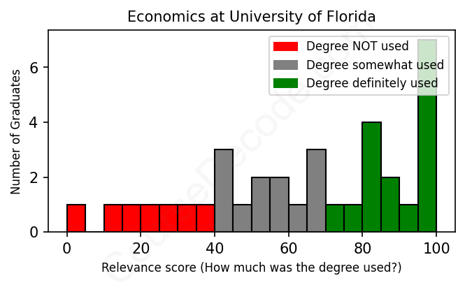 First, some facts. Of the Economics graduates from University of Florida we've analyzed , here's how many have used (or NOT used) their degree in their career: