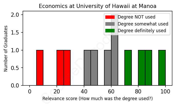 First, some facts. Of the Economics graduates from University of Hawaii at Manoa we've analyzed , here's how many have used (or NOT used) their degree in their career: