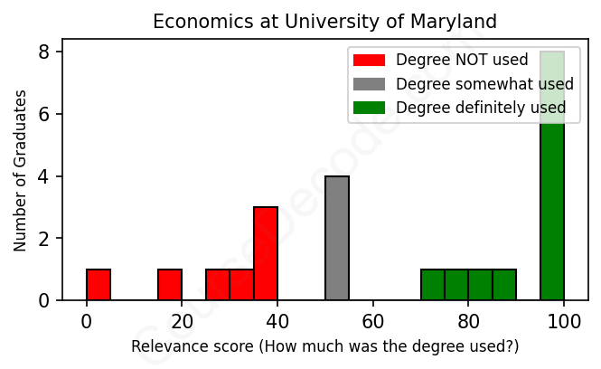 First, some facts. Of the Economics graduates from University of Maryland we've analyzed , here's how many have used (or NOT used) their degree in their career: