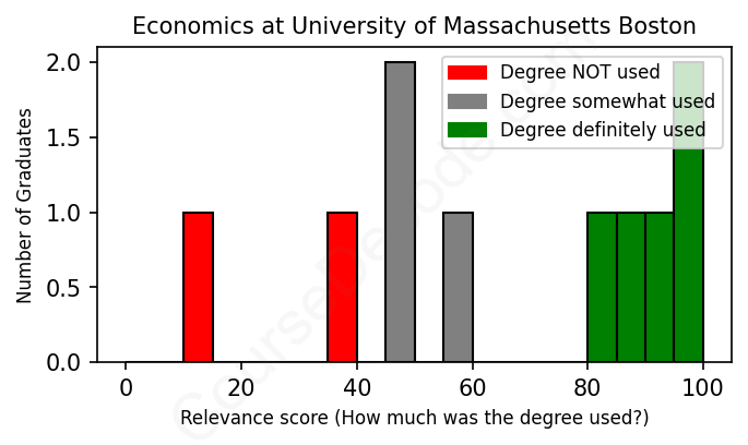 First, some facts. Of the Economics graduates from University of Massachusetts Boston we've analyzed , here's how many have used (or NOT used) their degree in their career: