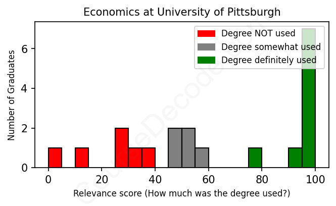 First, some facts. Of the Economics graduates from University of Pittsburgh we've analyzed , here's how many have used (or NOT used) their degree in their career: