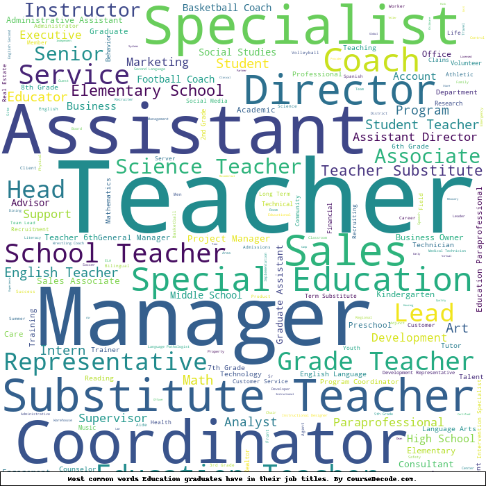 Here is a visual representation of the most common words in job titles for Education graduates: