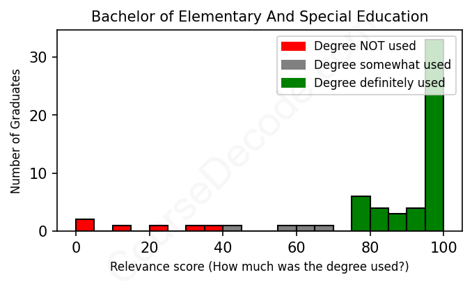 First, some facts. Of the Elementary And Special Education graduates we've analyzed , here's how many have used (or NOT used) their degree in their career:
