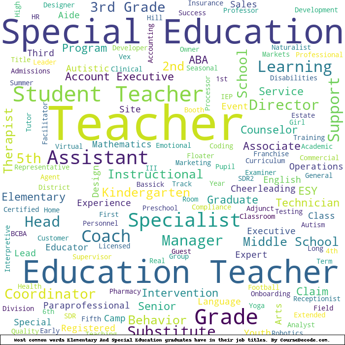 Here is a visual representation of the most common words in job titles for Elementary And Special Education graduates: