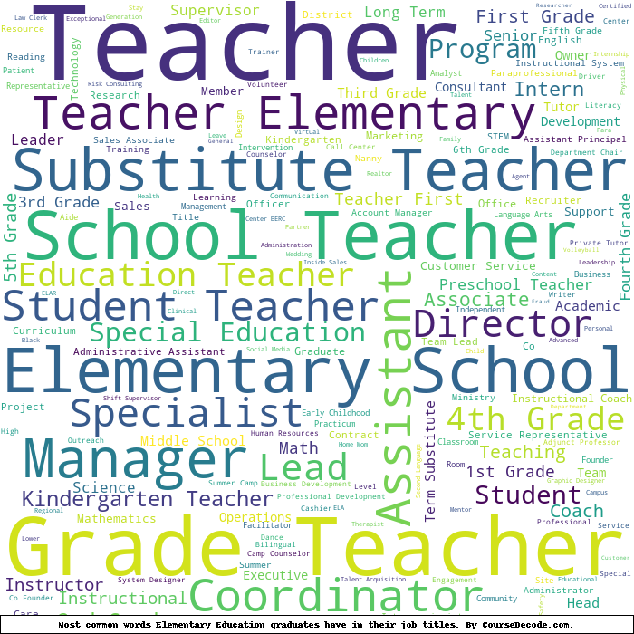 Here is a visual representation of the most common words in job titles for Elementary Education graduates: