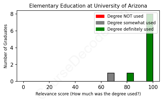 First, some facts. Of the Elementary Education graduates from University of Arizona we've analyzed , here's how many have used (or NOT used) their degree in their career: