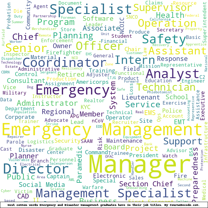 Here is a visual representation of the most common words in job titles for Emergency and Disaster Management graduates: