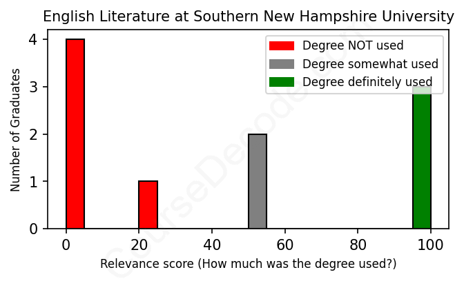 First, some facts. Of the English Literature graduates from Southern New Hampshire University we've analyzed , here's how many have used (or NOT used) their degree in their career: