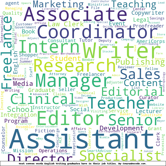 Here is a visual representation of the most common words in job titles for English Writing graduates: